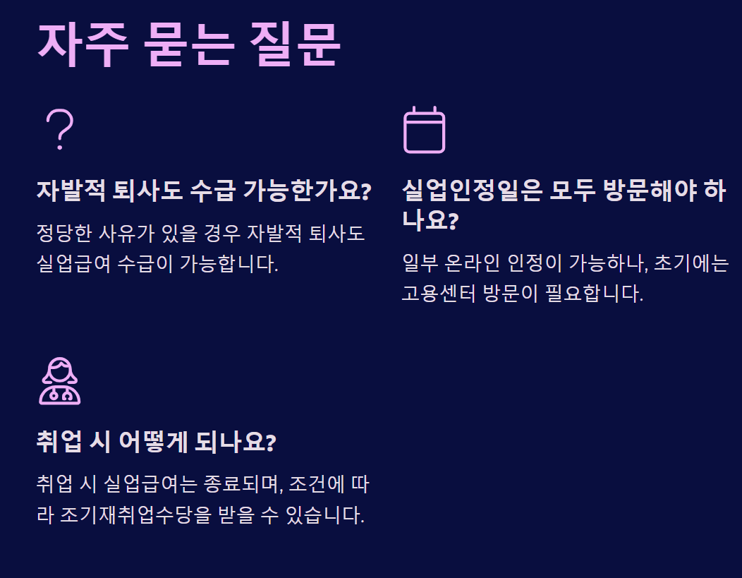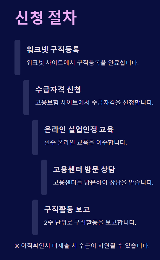 - 재취업 의지: 워크넷 구직 등록 및 활동 필수