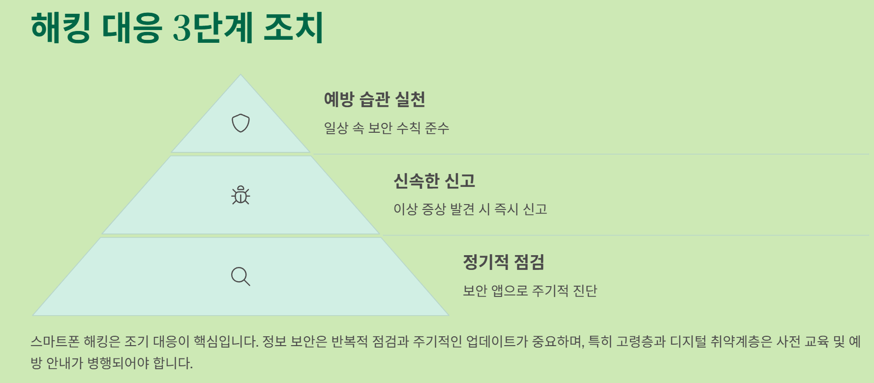 휴대폰 해킹은 더 이상 특정 대상만의 문제가 아닙니다. 누구나 피해자가 될 수 있기 때문에, 수시로 보안 점검을 하고 이상 증상이 있을 때는 즉시 조치하는 것이 중요합니다.